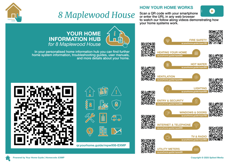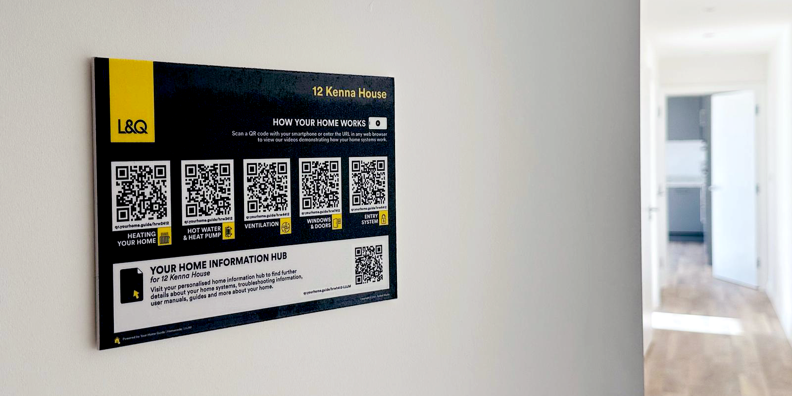 Home specific, QR code & URL access sheets are supplied digitally and physically to be installed in home utility cupboards.