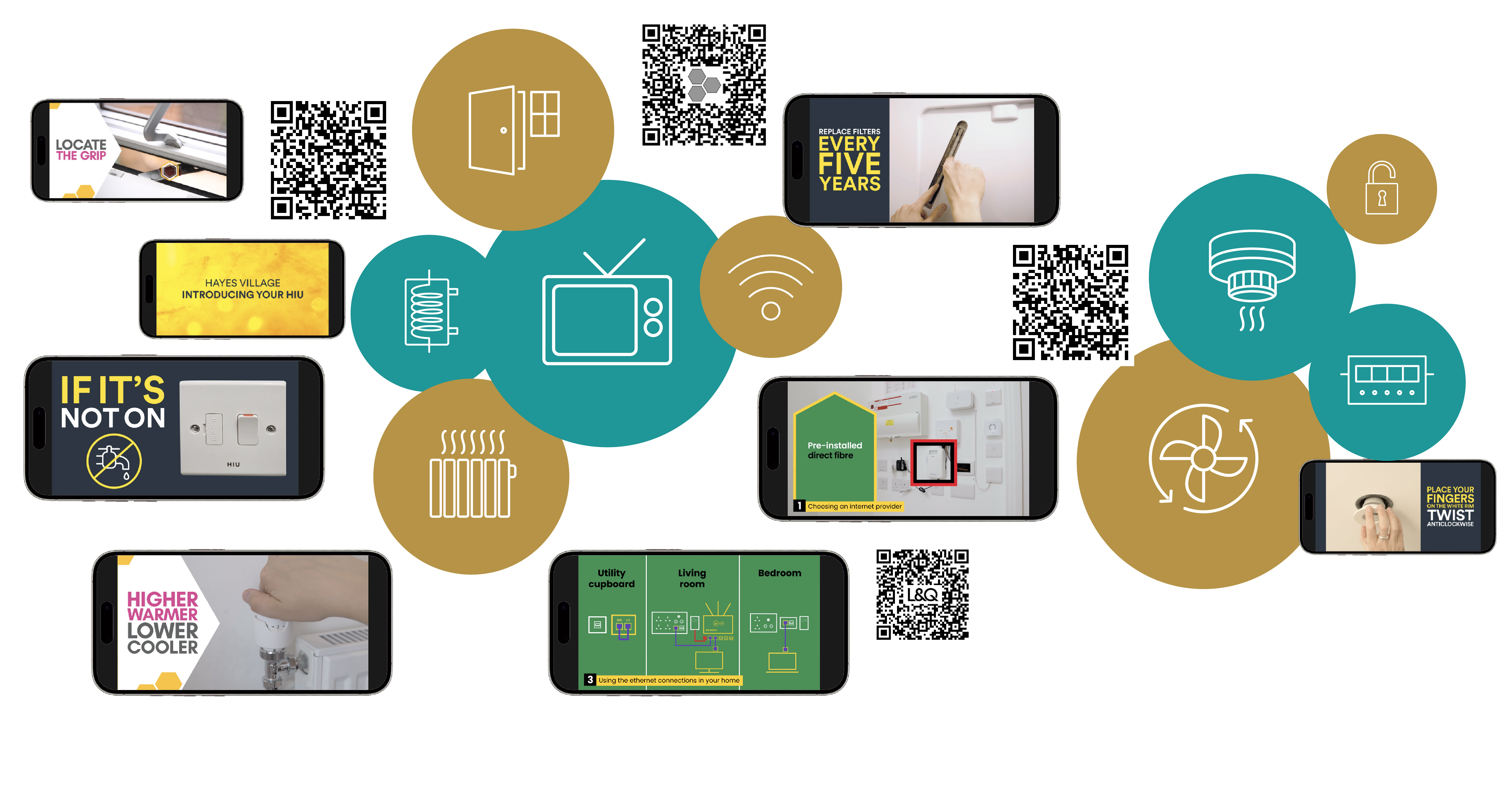 These provide on-demand long term easy access to each home’s YourHome.Guide personalised home information hub and follow along videos.